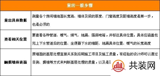 量房是裝修第一步,雖然一般都由設計師來量房,但是業(yè)主也要懂一些技巧,才能更好地進行接下來的裝修工作。  1.須知量房的重要意義 許多業(yè)主對量房并不重視,統(tǒng)一量房可以讓自己更深入的了解到自己的房間布局,也方便了裝修公司以及設計師對房間的認知,從而更好地完成設計。此外,量房需要精確到毫米級,能夠確保裝修時線路以及管道精確鋪設。 2.量房的收費情況 一般都是請設計師來量房,一般一次100元左右。如果量好房,業(yè)主選擇這家裝修公司設計、施工,則這100元自動轉(zhuǎn)化為定金;如果量好房就結束了,則這100元就是量房的費用。 3.量房順序有講究 量房前大概巡視下每個房間,做到心里有數(shù)。然后從最靠近大門的空間開始進行逐一測量。手中一定要做好記錄,確保每一個測量數(shù)據(jù)的對應。 4.裝修量房一般流程 ?、?準備量房工具 量房時基本工具有卷尺(長度5米以上)、紙筆,還有相機、繪圖板、激光測量儀等。 ?、?繪制房間圖紙在量房前記得攜帶房屋戶型圖,如果沒有帶,可以現(xiàn)場畫出大概的平面結構圖。巡視一遍所有的房間,了解基本的房型結構。圖不需要太講求尺寸,只要能進行數(shù)據(jù)標記就行。 ③ 實施測量 首先,測量各個房間墻地面長寬高、墻體及梁的厚度、門窗高度及距墻高度; 其次,查看各種管道、暖氣、煤氣、地漏、強弱電箱,并標注具體位置;最后,查看原墻面的基層處理質(zhì)量,判斷是否需要重新處理。  ④ 拍照留存底檔 最好在量房的時候能夠拍照作留底,有利于后期設計的準確。 ?、?多與設計師溝通 量房時,應多和設計師進行溝通,表達自己對房屋的構想和要求。 Tips: ?、俜壳耙攘私夥课菟诘男^(qū)物業(yè),對房屋裝修的具體規(guī)定,例如在水電改造方面的具體要求,房屋外立面可否拆改,陽臺窗能否封閉等等,以避免不必要的麻煩。 ?、?有特殊之處要用不同顏色的筆標清楚。 ?、?在全部測量完后,再全面檢查一遍,以確保測量的準確、精細。 ?、?用卷尺測量長度的話,需要兩個人配合才行,否則很容易造成數(shù)據(jù)不準確。 |