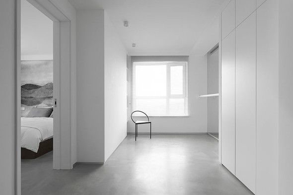 圖/東己壤設(shè)計(jì)研究室 3、設(shè)計(jì)的克制 極簡(jiǎn)的設(shè)計(jì),是不再以形式為設(shè)計(jì)的出發(fā)點(diǎn),講究的是設(shè)計(jì)和實(shí)用的科學(xué)融合。簡(jiǎn)約而不簡(jiǎn)單,是設(shè)計(jì)師經(jīng)過深入了解居住者的生活習(xí)慣和愛好,來去繁從簡(jiǎn),合理規(guī)劃而來的。其強(qiáng)調(diào)空間的單純性,去掉多余的裝飾,將空間簡(jiǎn)化到光、墻和體,造成空間的流動(dòng)和不同層次的穿透性。讓居住者在這樣的環(huán)境中得到徹底的放松,以簡(jiǎn)潔的居住空間換取專注的精神空間。 比如這個(gè)單層4米6的頂樓,設(shè)計(jì)師采用“隱”和“簡(jiǎn)”的處理方式,滿足喜歡簡(jiǎn)單生活的年輕屋主。 整體空間大面積留白,家居尺寸不為顯闊綽,而是參考到居住者的使用情況,點(diǎn)到為止。
