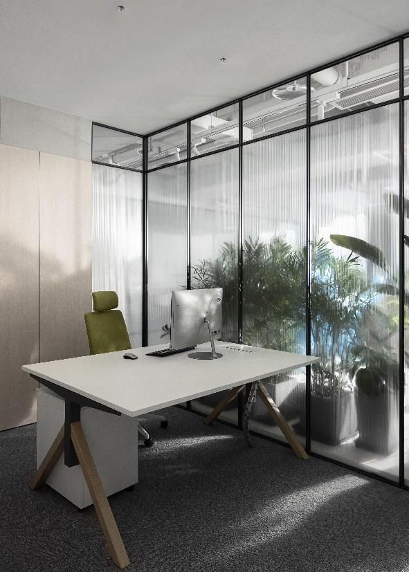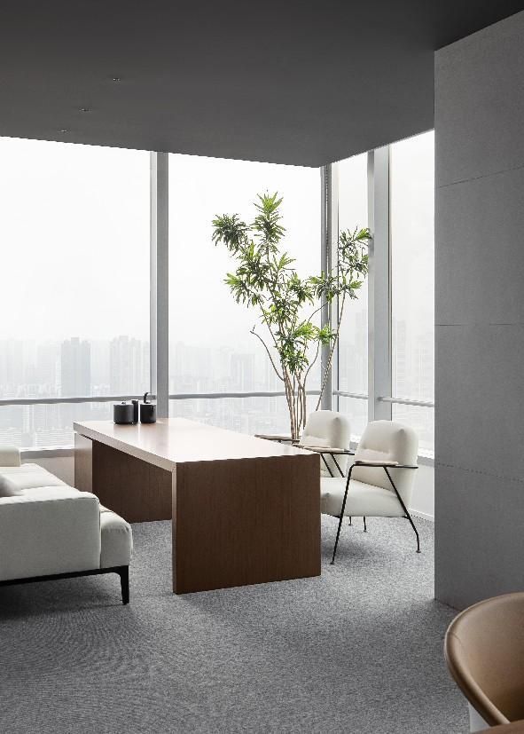 設計的構想,是想打造一個現(xiàn)代環(huán)保,空間均質(zhì)、兼具藝術與高效的辦公場所,所以,從空間布局上,擯棄了格子間的傳統(tǒng)做法,盡量把不必要封閉的空間打開,讓窗外開闊的江景納入室內(nèi)。