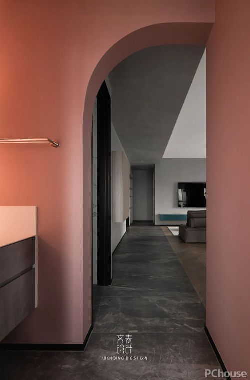 洗手間 設(shè)計(jì)師在筆直硬朗的實(shí)墻中注入了弧形線條,通過(guò)線條中和了色彩上的視覺(jué)沖擊強(qiáng)度,讓慢慢暈開(kāi)的橙色不再突兀,反而舒適且不刺眼。 屋主:陳先生: 另外,我覺(jué)得設(shè)計(jì)師在整個(gè)家中的用色上都很考究,整體感覺(jué)非常棒。用顏色搭配質(zhì)地,將質(zhì)感與美感相結(jié)合,在餐廳處,臥室里,都有設(shè)計(jì)師的色彩巧思。