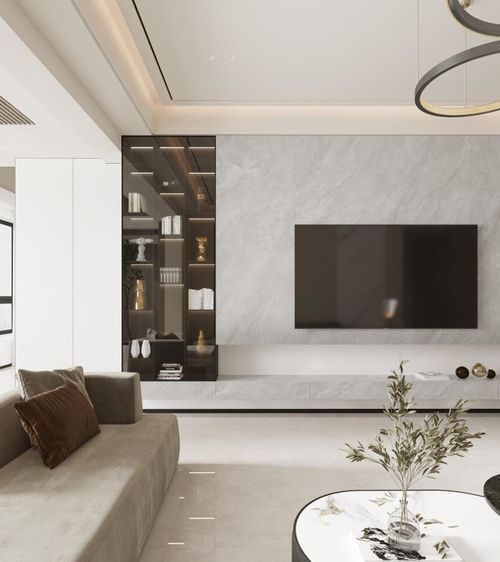 應用產品:墻面A+FYH11975150S威海灰、地面A+FTH10190180S維納斯灰 紋理大氣的灰色電視背景墻與經典優(yōu)雅的灰色地磚相呼應,整體層次豐富、質感立體,給空間帶來時尚高級的美感。青蔥的綠植和墨綠色的沙發(fā)靠枕,讓客廳更加時尚和現(xiàn)代。
