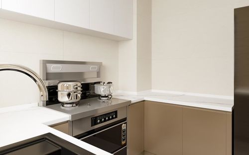 應用產品:墻面EPZ20260120G紗黃 廚房采用U字型設計,靈活實用的內嵌式櫥柜和沉靜內斂的黃色墻面,不過分張揚,卻以舒緩自然的姿態(tài)直抵人心,呈現(xiàn)優(yōu)雅脫俗的超凡氣質。