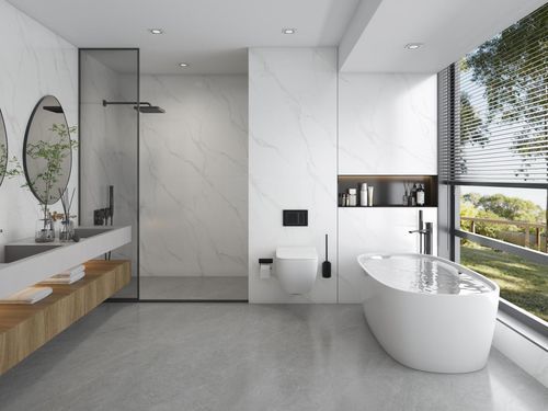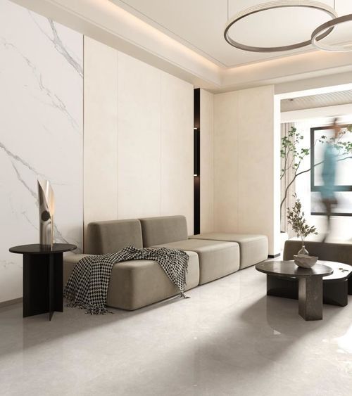 應用產品:墻面FZZ00360120GL-云海白、地面FZZ10460120GL清溪石(霜灰) 渾然天成的灰色調,搭配大氣壯美的云海白,經典的白灰色調不斷組合碰撞,把現(xiàn)代質感美學展現(xiàn)得淋漓盡致,營造活潑、愜意的空間氛圍。