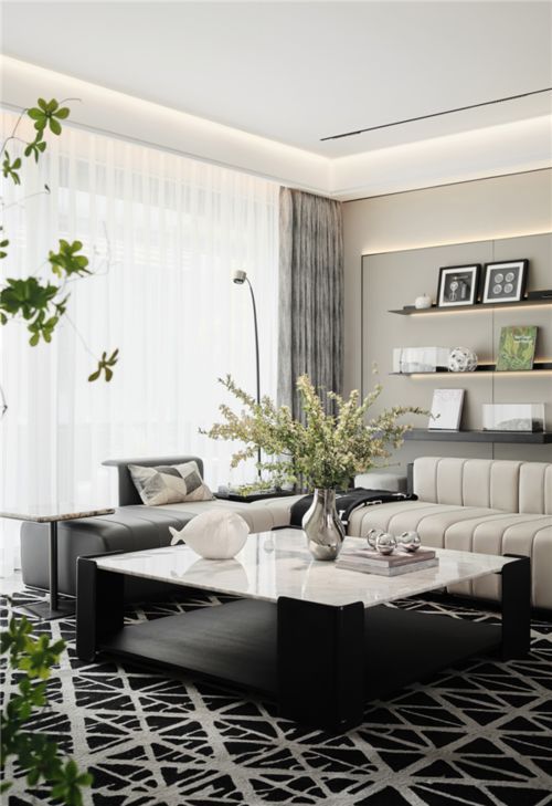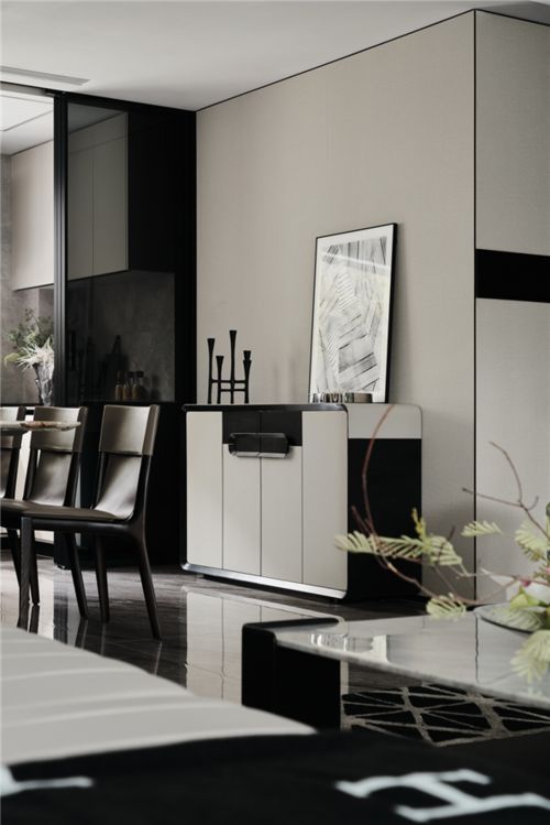 客餐通廳設(shè)計(jì),社交實(shí)力派。洋房戶型客廳+餐廳設(shè)計(jì),開(kāi)闊大氣,盡顯主人會(huì)客尺度。打破空間壁壘,延伸了視覺(jué)的通透性。
