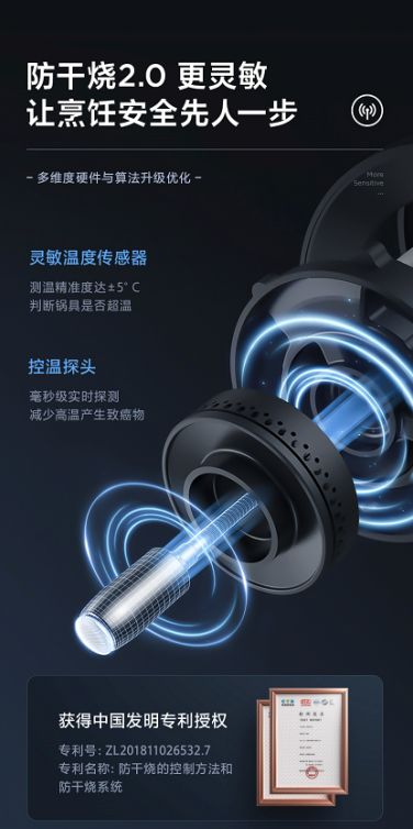 為了解決燃?xì)庠罡蔁袋c(diǎn),美的全新升級(jí)二代防干燒燃?xì)庠頠519S-M,擁有防干燒專(zhuān)利,搭載靈敏溫度傳感器,能夠精準(zhǔn)判斷鍋灶是否超溫,實(shí)現(xiàn)±5℃精控測(cè)溫,其配備智能控溫探頭,具備毫秒級(jí)實(shí)時(shí)探測(cè),一旦超過(guò)溫度臨界值,會(huì)主動(dòng)切斷氣源,有效防止干燒,減少高溫產(chǎn)生的致癌物,讓烹飪更安全。