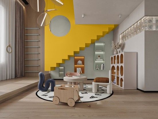 周曉安設(shè)計作品-立邦·呼吸-奶油色系-兒童區(qū)域 當(dāng)具有高級美感呼吸色盤被大面積運用于客餐廳區(qū)域時,呈現(xiàn)出了讓人倍感舒適的懷舊、經(jīng)典風(fēng)格,無論從視覺上還是觸感上,都為居家生活帶來了寧靜溫柔、慵懶愜意的氛圍感。