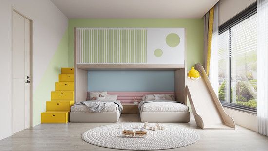 立邦-幻想·馬卡龍色系-北歐-兒童房 “幻想·馬卡龍色”明度較低,視覺上可愛活潑,適合兒童房間;