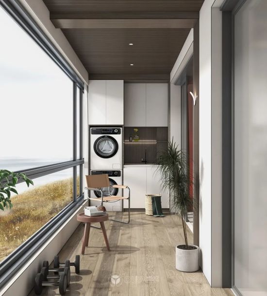 封陽臺設(shè)計,可以把風(fēng)雨、熱能都阻擋在外面。嵌入式的陽臺柜,減少陽臺的雜亂感。陽光照進(jìn)空間,如同在戶外健身一樣,卻沒有燥熱與暴曬。