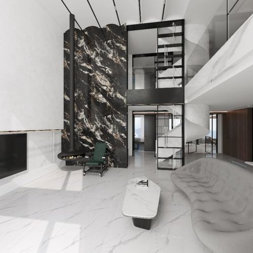 應(yīng)用產(chǎn)品:奧爾特灰、江山白、金色年華 侘寂風(fēng)的流行讓曲線有了更多的發(fā)展空間。侘寂風(fēng)沒有復(fù)雜的造型裝飾,而是利用曲面和曲線在室內(nèi)打造出一種分散又統(tǒng)一的差異感,優(yōu)雅的弧線讓空間看上去更加柔和純粹?!驹萍啺谆摇砍洚?dāng)客廳背景墻,質(zhì)感柔和、調(diào)性溫暖的云紗紋理和質(zhì)感,有著強(qiáng)烈的回歸自然之感,散發(fā)著質(zhì)樸、自然的優(yōu)雅美感。