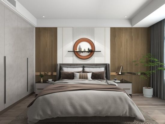 臥室 臥室的設(shè)計同樣秉承輕奢風(fēng)的理念。有著非常個性化設(shè)計,特別是奧華·月牙白格柵板和搭配的裝飾畫,最后呈現(xiàn)出的奢華效果,既有視覺享受,又能讓人享受生活,身心都能得到滿足才是最重要的。