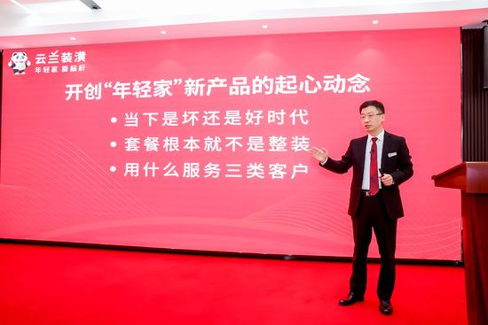 2023年3月25日,云蘭裝潢6感年輕整裝“年輕家”新品發(fā)布會震撼發(fā)布!云蘭裝潢專注家裝20年,回望過去,云蘭裝潢以“靠譜”為經(jīng)營之道從1.0時代攀登到了當下5.0時代;展望未來,云蘭裝潢20歲年輕正當時!本次在申城家裝行業(yè)首次發(fā)布年輕家新產(chǎn)品,樹立了年輕家新標桿!云蘭裝潢首發(fā)《6感年輕整裝白皮書》,專致于讓滬上成千上萬市民家庭常住青春里! 領(lǐng)導講話 云蘭裝潢邀請了行業(yè)內(nèi)外的領(lǐng)導嘉賓出席并為發(fā)布會做開場致辭。領(lǐng)導嘉賓們在發(fā)布會上高度評價了云蘭裝潢這20年一路走來取得的成就,充分肯定了云蘭裝潢為上海家裝行業(yè)做出的貢獻,并為云蘭裝潢本次“6感年輕整裝”年輕家新品給予了充分肯定和高度評價! 云蘭裝潢總經(jīng)理汪興國先生現(xiàn)場圖文并茂,在發(fā)布會中致辭: 面對當下家裝市場,唯有模式變革、產(chǎn)品迭代、設(shè)計進化,才能應(yīng)對市場變化。本次新品發(fā)布云蘭裝潢重點解決了裝修客戶“人會老,家更容易老”的沖突性需求,通過產(chǎn)品模式創(chuàng)新,開辟出一條年輕家新產(chǎn)品模式! 同時云蘭裝潢深入研究了新婚人群、中年人群、老年人群的裝修需求點和潮流趨勢:專門為年輕人新婚家庭的婚房打造了年輕家時尚愛巢新標桿;為中年人群小房換大房打造了年輕家舒適功能性家居新標桿;為步入老年的退休人群迎來的第二春美好生活打造年輕家健康安全居家養(yǎng)老家居新標桿!