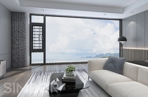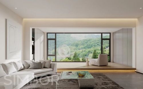 SIMBOR 恒哲系列 緊跟春天的步伐,讓觀景陽臺變成一方度假勝地。大平層住宅采用封陽臺設計,大面積落地玻璃窗,到頂成墻,明朗通透,無限增添室內采光。 極窄平齊窗框,更極簡更高級,營造出寬域空間視野,室內室外景色自成一體,攬自然之大境,享春日之清幽,安坐家中,觀日升日落,賞云卷云舒。 02