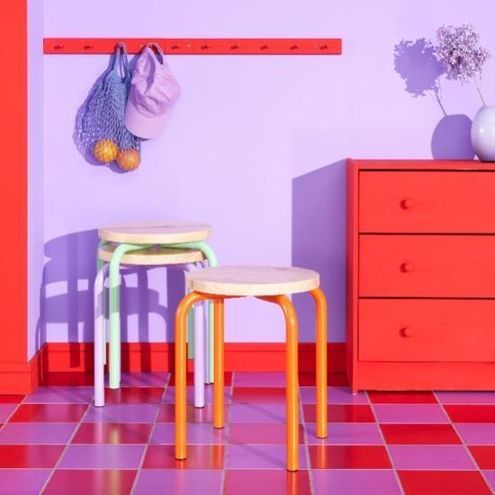 Nytillverkad 霓特浮德 系列 印花產(chǎn)品 除此之外,Nytillverkad 霓特浮德 系列還包括DOMSTEN 多姆斯坦 凳子,這張凳子擁有光滑的松木凳面與現(xiàn)代時(shí)尚的彩色金屬支腿,其原型是由Karin Mobring設(shè)計(jì)的JERRY 凳子;此外,還有一款BONDSKÄRET 邦克拉特 衣帽架,其原型是由設(shè)計(jì)師Rutger Andersson打造的SMED 衣帽架,現(xiàn)以醒目大膽的風(fēng)格煥新演繹。
