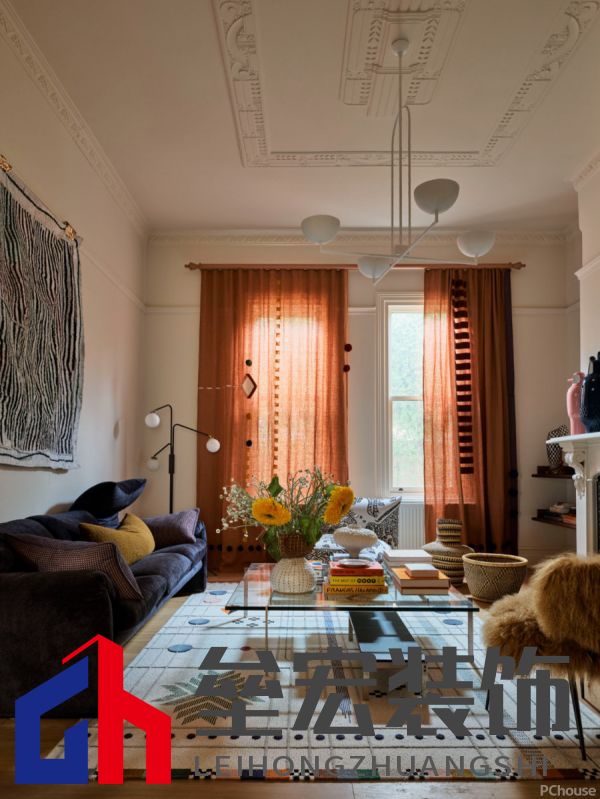 住宅內(nèi)設(shè)計(jì)了兩個(gè)客廳,其核心在于將兩個(gè)截然不同的文化背景進(jìn)行有機(jī)融合。冬季客廳保留了房屋原始的維多利亞風(fēng)格元素,如裝飾天花板和畫軌,同時(shí)通過(guò)吊燈和藝術(shù)品強(qiáng)化了歷史感。沙發(fā)和扶手椅的配色靈感來(lái)源于濃郁的香料色調(diào)。