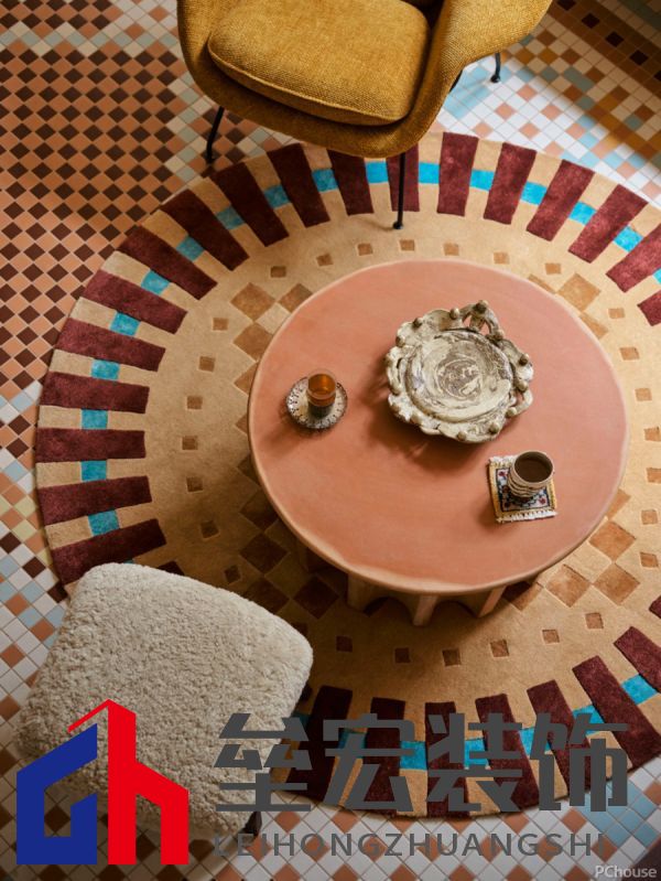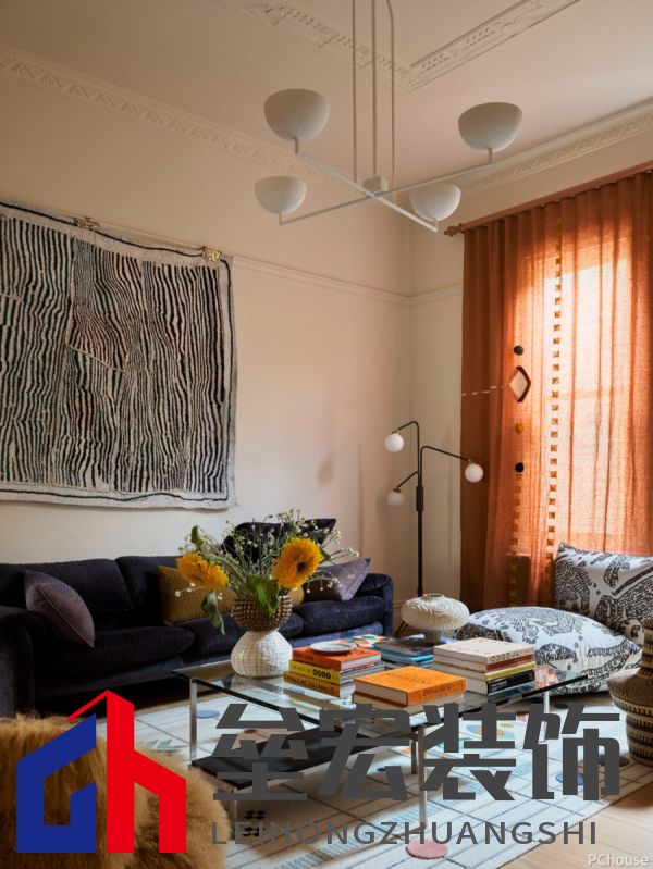 夏季客廳為了增強(qiáng)對(duì)比,設(shè)計(jì)師選擇了姜黃色的窗簾,并在地毯上引入了抽象幾何圖案,與整個(gè)住宅的設(shè)計(jì)語(yǔ)言一致。