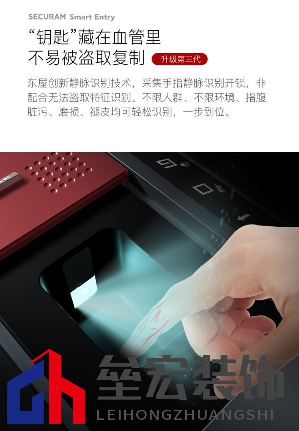 一些門鎖專家認(rèn)為,“智能識別鎖在算法技術(shù)上,確實(shí)存在很大的提升空間。更加智能的算法,可以顯著降低門鎖產(chǎn)品‘誤判’的可能性,將安全風(fēng)險盡量減少至最低限度?!?/p> 在這樣的市場環(huán)境下,靜脈識別鎖成功被研制而出,并且憑借著高效、安全的解鎖模式,迅速在智能門鎖領(lǐng)域“稱王稱霸”,取得了無數(shù)消費(fèi)者的由衷青睞。 從生物學(xué)的層面上來看,靜脈識別的方式要更加穩(wěn)妥、更加安全一些,因?yàn)殪o脈的生物識別特征在體內(nèi),處于人體靜脈血管當(dāng)中,幾乎不會受外界任何因素的影響,具有穩(wěn)定性、唯一性、更加安全的特征。也就是說,靜脈識別不會出現(xiàn)磨損過度的狀況,深埋在人體靜脈血管里,是天然的“血脈鑰匙”。