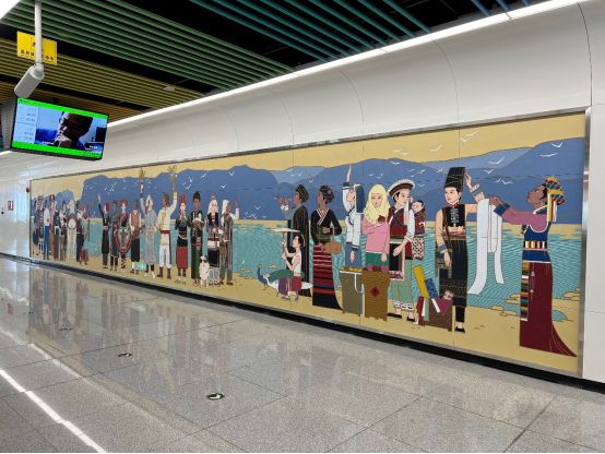 ??快速行動 精湛工藝獲認可 ??昆明地鐵5號線是連接昆明東北-西南向的骨干線路,線路盡顯昆明生態(tài)宜居、人與自然和諧共生的特征,其重點站點也集中展現(xiàn)了相應(yīng)的城市地域文化元素。漁戶村站作為線網(wǎng)中最靠近民族村的車站,以多民族、民族大團結(jié)為主題出發(fā),用民族的多色彩表現(xiàn)多元的地域文化。