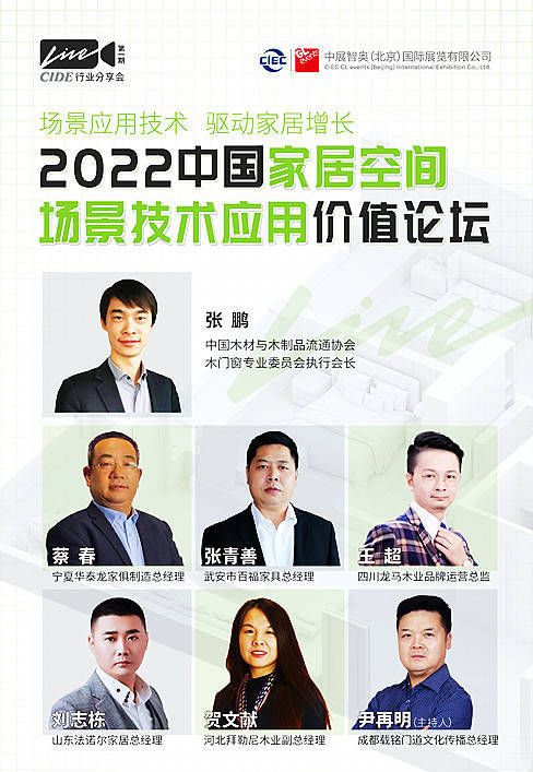 ↑“碼”上看直播 #直播預(yù)告 1、論壇主題: 2022中國家居空間場景技術(shù)應(yīng)用價(jià)值論壇 2、論壇時(shí)間 7月21日下午14:30-17:00 3、組織單位 聯(lián)合主辦 CIDE北京門業(yè)與定制家居展 金橋空間技術(shù)應(yīng)用 載銘門道策劃設(shè)計(jì)推廣全案機(jī)構(gòu) 轉(zhuǎn)播媒體 慧亞網(wǎng) 中華門窗網(wǎng) 好家傳媒 4、主題分享 2022家居空間場景技術(shù)應(yīng)用價(jià)值解碼 ——載銘門道策劃機(jī)構(gòu)負(fù)責(zé)人 尹再明(主持人) 5、核心議題 ①空間場景技術(shù)應(yīng)用核心要素需注意什么? ②空間場景技術(shù)在家居行業(yè)應(yīng)用有哪些商業(yè)價(jià)值? ③終端如何賦能渠道增長和創(chuàng)造用戶價(jià)值? 6、論壇嘉賓 中國木材與木制品流通協(xié)會(huì)木門窗專委會(huì)執(zhí)行會(huì)長 張鵬 寧夏華泰龍家俱制造有限公司總經(jīng)理 蔡 春 武安市百福家具有限公司總經(jīng)理 張青善 山東法諾爾家居有限公司總經(jīng)理 劉志棟 四川龍馬木業(yè)有限公司運(yùn)營總監(jiān) 王 超 河北拜勒尼木業(yè)有限公司副總經(jīng)理 賀文獻(xiàn)  7月21日下午14:30,展貿(mào)易app、展會(huì)官方視頻號“北京門業(yè)與定制家居展”將準(zhǔn)時(shí)開播,慧亞網(wǎng)、中華門窗網(wǎng)、好家傳媒也將同步轉(zhuǎn)播。 掃描或識別海報(bào),提前報(bào)名鎖定直播間。報(bào)名完成后分享給朋友或朋友圈邀請好友報(bào)名/觀看直播,即有機(jī)會(huì)贏取精美好禮;直播中對品牌感興趣還可以點(diǎn)擊右下角提交意向信息,在線進(jìn)行商貿(mào)配對,趕快來參與~ CIDE Live 構(gòu)建家居行業(yè)線上商貿(mào)生態(tài)圈 CIDE Live是CIDE北京門業(yè)與定制家居展集選商、采購、互動(dòng)和學(xué)習(xí)的線上商貿(mào)平臺。定期推出“大咖說定制”、“行業(yè)分享會(huì)”、“云端商貿(mào)配對”等系列直播,協(xié)助大家掌握行業(yè)最新動(dòng)態(tài),聆聽大咖解析趨勢發(fā)展,拓展有效商貿(mào)聯(lián)系,解碼家居新驅(qū)力。 |