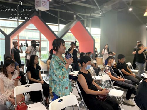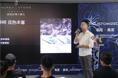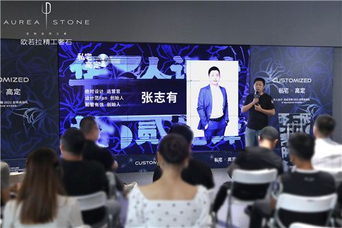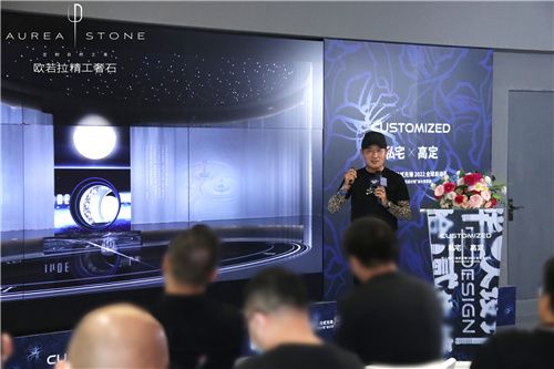 隨后,歐若拉精工奢石總裁丁國(guó)興先生為現(xiàn)場(chǎng)嘉賓帶來關(guān)于歐若拉的品牌故事。從0.618黃金分格比例,到歐若拉品牌的誕生,作為精工奢石全球第一、市場(chǎng)唯一的品牌,歐若拉擁有包含大理石、奢石、水泥、金屬、木紋等品種多樣及花色豐富的產(chǎn)品體系,物理性能卓越,可厚可薄,可彎可透……