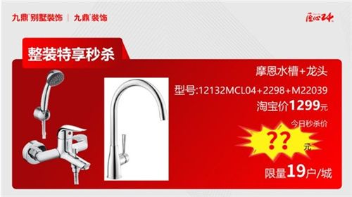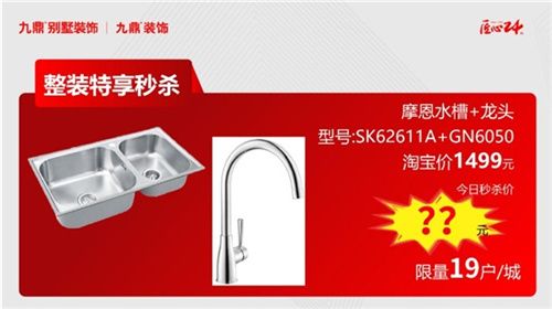 摩恩水槽+龍頭,型號:12132MCL04+2298+M22039,淘寶價(jià)1299元,今日秒殺價(jià)??元(限量19戶/城)