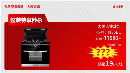火星人集成灶,型號:N35BC,淘寶價(jià)11500元,今日秒殺價(jià)???元(限量19戶/城)