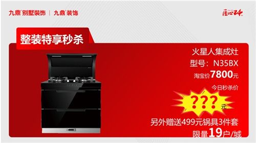火星人集成灶,型號:N35BX,淘寶價(jià)7800元,今日秒殺價(jià)???元,另外贈送499元鍋3件套(限量版19戶/城)