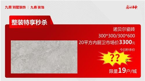 諾貝爾瓷磚300*300/300*600,20平方內(nèi)廚衛(wèi)市場價(jià)3300元,今日秒殺價(jià)??元(限量19戶/城)