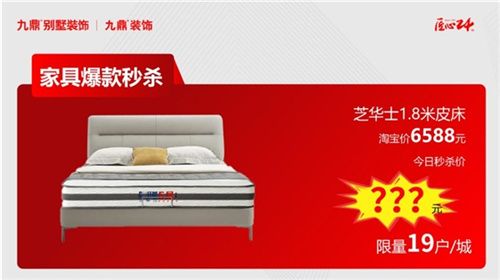 八重鉅惠享不停 燃爆家裝旺季 家具爆款秒殺 芝華士1.8皮床,淘寶價(jià)6588元,今日秒殺價(jià)???元(限量19戶/城)