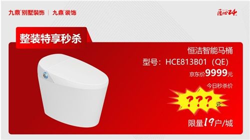 整裝特享秒殺 恒潔智能馬桶,型號:HCE813B01(QE),京東價(jià)9999元,今日秒殺價(jià)???(限量19戶/城)