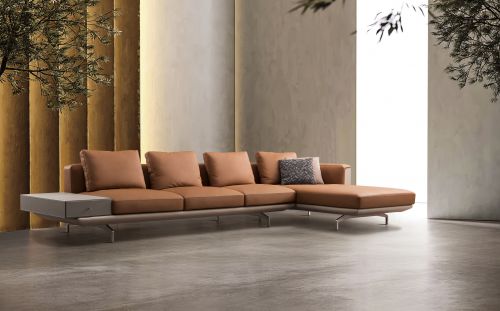 圖片來源:佛山·羅浮宮國際家具博覽中心1FC52/70金美麗家 日常生活中,大部分日?;顒佣家試@客廳空間來進(jìn)行,這款現(xiàn)代沙發(fā)造型簡潔典雅,結(jié)構(gòu)比例精準(zhǔn),坐感符合人體工學(xué)。懸浮式設(shè)計,讓空間更為靈動,有效減少對地面的占用,便于清潔打掃,利于掃地機(jī)器人通過。沙發(fā)一側(cè)扶手設(shè)置馬鞍皮貼實木儲物柜,增加了儲藏和置物的需求,即便是小戶型的客廳,也能打造出屬于自己的別致空間。