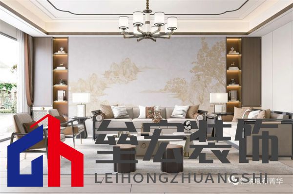 墻面上流暢的寫意山水畫 反映了中式古典風(fēng)采 筆墨交融,構(gòu)建詩(shī)情畫意氛圍 兩岸青山 中灰