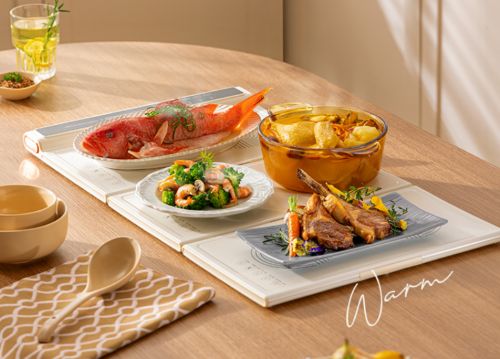 最有意思的一點就是,從形狀來看,區(qū)別于其他傳統(tǒng)的大塊暖菜板,它可以拼接使用,拆卸后能輕松收納,放到櫥柜等;幾個人用不到3塊加熱板,還能拆開使用,既不費電又實用;遇到聚餐,拼上5塊板,就能加熱10個菜了。