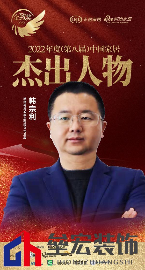 ??2022年12月26日,『趁勢(shì)·再起——2022中國(guó)家居新時(shí)代盛典暨金致獎(jiǎng)?lì)C獎(jiǎng)典禮』在云端盛大舉行。韓師傅集成家居總裁 韓宗利榮獲「2022(第八屆)中國(guó)家居杰出人物」稱號(hào)。 ??韓師傅商學(xué)院院長(zhǎng) ??臨沂市裝飾裝修業(yè)協(xié)會(huì)理事 ??山東省木材與木制品流通協(xié)會(huì)副秘書(shū)長(zhǎng) ??山東省家具協(xié)會(huì)定制家居專委會(huì)副會(huì)長(zhǎng) ??SIDP上海國(guó)際設(shè)計(jì)師平臺(tái)臨沂分會(huì)會(huì)長(zhǎng) ??中國(guó)木材與木制品流通協(xié)會(huì)理事,板材分會(huì)副會(huì)長(zhǎng) ??林業(yè)產(chǎn)業(yè)標(biāo)準(zhǔn)化國(guó)家創(chuàng)新聯(lián)盟理事 ??參與起草2019年《木材與木制品供應(yīng)商管理規(guī)范》團(tuán)體標(biāo)準(zhǔn) ??參與起草2019年《木質(zhì)集成家居安裝、驗(yàn)收和使用規(guī)范》行業(yè)標(biāo)準(zhǔn) ??參與起草2019年《木質(zhì)集成家居部件制造通用技術(shù)要求》行業(yè)標(biāo)準(zhǔn) ??參與起草2019年《基于甲醛釋放率的人造板室內(nèi)承載限量指南》團(tuán)家標(biāo)準(zhǔn) ??參與起草2019年《室內(nèi)裝飾裝修材料 人造板及其制品中甲醛釋放限量 GB18580-2017 標(biāo)準(zhǔn)翻譯》團(tuán)家標(biāo)準(zhǔn) ??現(xiàn)任臨沂市第十五屆政協(xié)委員。 ??“金致獎(jiǎng)”系列評(píng)選活動(dòng)旨在基于國(guó)家政策、市場(chǎng)趨勢(shì)對(duì)家居行業(yè)年度優(yōu)秀人物、優(yōu)質(zhì)品牌及產(chǎn)品進(jìn)行表彰及宣揚(yáng),樹(shù)立行業(yè)標(biāo)桿,鼓勵(lì)家居產(chǎn)業(yè)鏈上的企業(yè)以技術(shù)創(chuàng)新及品牌升級(jí)為原動(dòng)力,不斷提升品牌力、產(chǎn)品力、經(jīng)營(yíng)力,以此加強(qiáng)品牌口碑及影響力的塑造,鼓勵(lì)家居人不斷發(fā)揚(yáng)專業(yè)及匠心精神,踐行打造美好人居戰(zhàn)略核心,推動(dòng)行業(yè)健康、可持續(xù)的高速發(fā)展。 ??作為家居業(yè)界中首屈一指的年度盛會(huì),本次盛典以“趁勢(shì)·再起”為主題,內(nèi)容囊括行業(yè)思想盛宴、「2022十大家居事件」發(fā)布、經(jīng)濟(jì)學(xué)家馬光遠(yuǎn)教授主題演講以及2022年度多項(xiàng)榜單揭曉等重磅環(huán)節(jié),寄托著中國(guó)家居人步履不停,迎難而上,奮發(fā)拼搏的昂揚(yáng)精神,盛會(huì)在對(duì)2022年家居行業(yè)進(jìn)行年度復(fù)盤的同時(shí),還協(xié)邀了諸多專家學(xué)者與行業(yè)精英,共同聚焦家居行業(yè)新時(shí)期下的高質(zhì)量發(fā)展,萃取家居行業(yè)同仁智慧,凝聚家居行業(yè)各方力量,一道探尋行業(yè)在新局勢(shì)下的發(fā)展之道。
