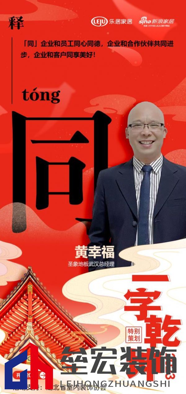 在新浪家居“2023一字乾坤”活動中,圣象地板武漢總經(jīng)理黃幸福:「同」企業(yè)和員工同心同德,企業(yè)和合作伙伴共同進步,企業(yè)和客戶同享美好! “以漢字賦能湖北家居企業(yè),彰顯厚積薄發(fā)之力”,以單字抒寫了各家企業(yè)及媒體的新年愿景與發(fā)展信條,領(lǐng)略楚風(fēng)漢韻下湖北家居人砥礪向前,揚帆未來的決心與動力,情暖兔歲,新啟華章。 |