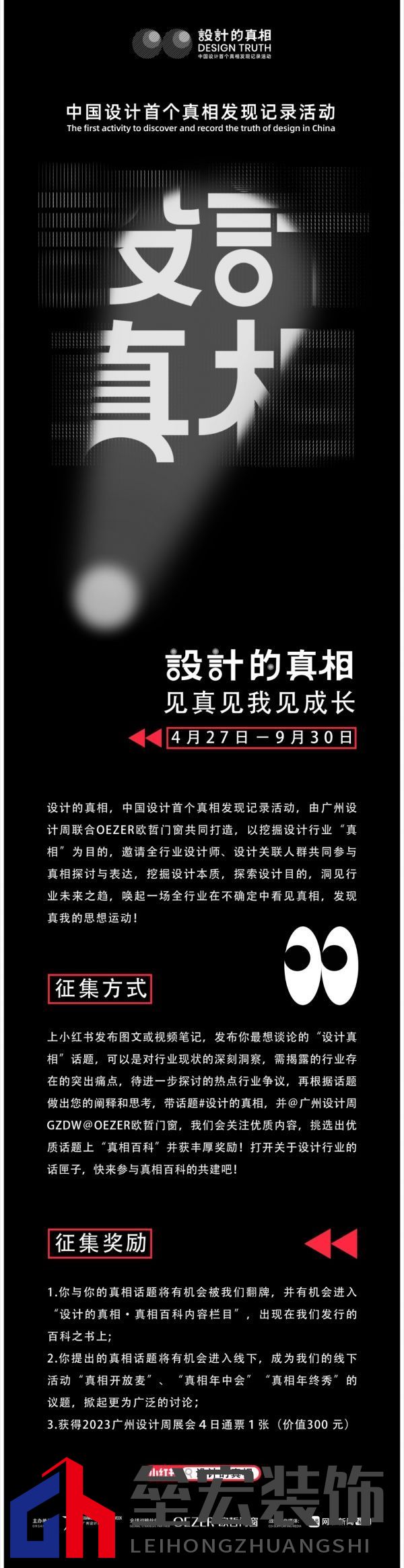 | 摘要:征集每位設(shè)計人的聲音,也就獲得了洞見真相的能力  設(shè)計無處不在。設(shè)計是為更美好的世界、設(shè)計是解決問題、設(shè)計是重新塑造日常。 設(shè)計身披榮光、背向誤解,常常被贊美、又常常被忽略或過度解讀。 但設(shè)計就是設(shè)計,每一位敢說真話、勇尋真相的設(shè)計人,無不共同描繪出設(shè)計最真實的模樣!     在設(shè)計被不斷談?wù)摰漠?dāng)下,從行業(yè)動態(tài)到個體經(jīng)驗,從業(yè)主、品牌方、設(shè)計師到行業(yè)關(guān)聯(lián)人群的多元視角,是時候找出真相了。 這次,我們想說點真話、聊點平時聽不到的。 這次,我們想用文字記錄思想,將行業(yè)真話收錄在一個專屬于設(shè)計的“真相百科”里。  全新IP項目「設(shè)計的真相」全球發(fā)布禮于4月21日落幕意大利,廣州設(shè)計周×OEZER歐哲門窗將開放的、真實的、思辨的真相精神帶到設(shè)計之都米蘭。 從沉默到表達(dá),真相不再模糊,從立足國內(nèi)到勢能國際,力量不再單薄。   人們對于設(shè)計行業(yè),有著太多的好奇、質(zhì)疑與不確定,可以肯定的一點是,我們今天所處的美好世界,是由一些勇于向前和敢于嘗試的設(shè)計師創(chuàng)造的,他們是精銳的“先行者”、是撕碎標(biāo)簽的“叛逆者”,也是較真的“思辯者”、真誠的“平常人”。 他們探討和表達(dá)真相,并不僅限于對行業(yè)的痛點、秘密、不完美發(fā)幾句牢騷,而是憑著信仰之尺,以期助力中國設(shè)計師自我成長及設(shè)計圈層的長遠(yuǎn)發(fā)展!                   待解決的問題很多,各位自有心中答案;待發(fā)掘的真相很多,期待你能打開新的話題。 我們發(fā)起“真相百科”征集,聯(lián)動權(quán)威媒體加持助力,持續(xù)生產(chǎn)話題內(nèi)容造勢,是想以共創(chuàng)為原點延續(xù)思考,為設(shè)計關(guān)聯(lián)人群提供全新的觀點表達(dá)與交流的契機,共同講述與揭露那些設(shè)計行業(yè)背后的秘密。最終,征集而來的“設(shè)計真相”將會收錄在“真相百科”里發(fā)行,讓真相價值有跡可循。  END |