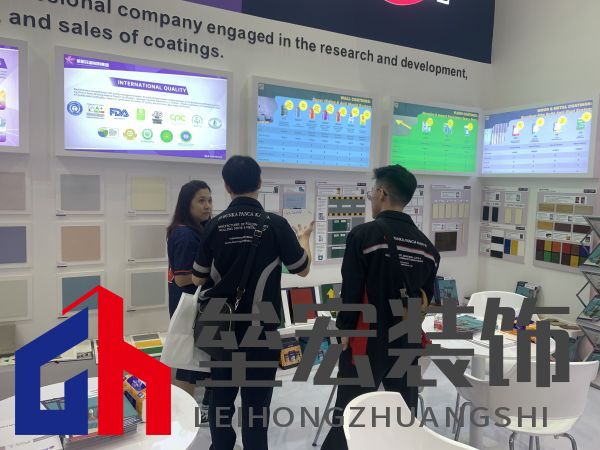 ??展會現(xiàn)場,紫荊花新材料集團旗下紫荊花涂料和駱駝漆兩大品牌組成的聯(lián)合展臺,以簡潔而不失大氣的風格呈現(xiàn),分別代表紫荊花涂料的紫色和代表駱駝漆的藍色交相輝映,讓人眼前一亮。紫荊花涂料展示了其豐富的全產(chǎn)品體系,包括工程外墻涂料、防腐涂料、家裝涂料、藝術(shù)涂料、無機涂料、地坪涂料、防火涂料、仿石涂料等產(chǎn)品悉數(shù)亮相;駱駝漆則重點展示了其中高端的家裝涂料、木器涂料等相關(guān)產(chǎn)品。紫荊花新材料集團以其獨特的展臺設(shè)計和豐富的展品、實物樣板吸引了大量參觀者駐足交流咨詢。