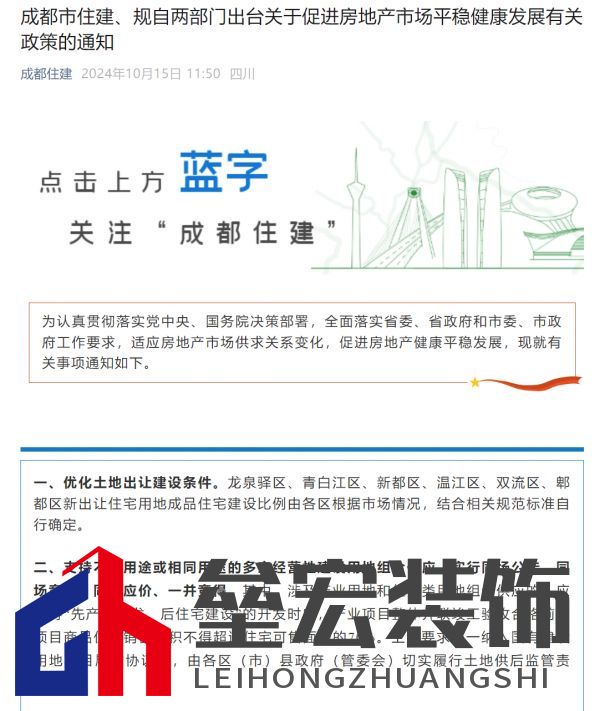 | 10月15日,成都多部門聯(lián)合發(fā)布新政,取消“滿五、滿二”限售規(guī)定,取得《不動產(chǎn)權(quán)證書》即可交易;二孩及以上家庭新購住房按首套辦理商業(yè)貸款;公積金貸款額度提高至120萬元,支持購房提取代際互助,取消省內(nèi)異地購房提取限制。此舉旨在促進房地產(chǎn)市場平穩(wěn)健康發(fā)展。 成都樓市再迎利好消息。 10月15日上午,成都市住房和城鄉(xiāng)建設(shè)局、成都市規(guī)劃和自然資源局、成都市發(fā)展和改革委員會、成都市公安局、成都住房公積金中心聯(lián)合召開涉及房地產(chǎn)、落戶等方面的政策溝通會。隨后,“成都住建”和“成都住房公積金”微信公眾號先后發(fā)布相關(guān)政策調(diào)整的通知。 其中,成都市住建、規(guī)自兩部門出臺《關(guān)于促進房地產(chǎn)市場平穩(wěn)健康發(fā)展有關(guān)政策的通知》(以下簡稱通知)指出,在成都新購商品住房(除定向銷售項目外)和二手住房的,取得《不動產(chǎn)權(quán)證書》后即可上市交易。同時,成都市范圍內(nèi),二孩及以上家庭新購住房辦理商業(yè)貸款時均認(rèn)定為購買首套住房,支持商業(yè)銀行按照認(rèn)定套數(shù)辦理住房貸款。該政策即日起正式實施。 成都住房公積金中心印發(fā)通知,對成都住房公積金貸款和提取政策進行了調(diào)整,涉及提高最高貸款額度、支持購房提取代際互助、提取支持由租轉(zhuǎn)購、取消省內(nèi)異地購房提取限制、支持商轉(zhuǎn)公等五項重要支持政策,并自即日起正式實施。 取消限售,取證即可上市交易 根據(jù)《通知》,成都市范圍內(nèi)新購商品住房(除定向銷售項目外)和二手住房的,取得《不動產(chǎn)權(quán)證書》后即可上市交易,在此之前已納入再交易管理范圍的住房仍按原政策執(zhí)行。新購商品住房以網(wǎng)簽備案時間為準(zhǔn),新購二手住房以不動產(chǎn)轉(zhuǎn)移登記登簿時間為準(zhǔn)。 同時,在成都市范圍內(nèi),二孩及以上家庭新購住房辦理商業(yè)貸款時均認(rèn)定為購買首套住房,支持商業(yè)銀行按照認(rèn)定套數(shù)辦理住房貸款。 來源:成都住建微信公眾號  《通知》還對土地出讓政策進行了優(yōu)化。 一是優(yōu)化土地出讓建設(shè)條件。龍泉驛區(qū)、青白江區(qū)、新都區(qū)、溫江區(qū)、雙流區(qū)、郫都區(qū)新出讓住宅用地成品住宅建設(shè)比例由各區(qū)根據(jù)市場情況,結(jié)合相關(guān)規(guī)范標(biāo)準(zhǔn)自行確定。 二是支持不同用途或相同用途的多宗經(jīng)營性建設(shè)用地組合供應(yīng),實行同場公告、同場競買、同時應(yīng)價、一并競得。其中,涉及產(chǎn)業(yè)用地和住宅類用地組合供應(yīng)的,應(yīng)堅持“先產(chǎn)業(yè)開發(fā)、后住宅建設(shè)”的開發(fā)時序,產(chǎn)業(yè)項目整體并聯(lián)竣工驗收合格前,項目商品住房銷售面積不得超過住宅可售面積的70%。上述要求統(tǒng)一納入國有建設(shè)用地項目履約協(xié)議書,由各區(qū)(市)縣政府(管委會)切實履行土地供后監(jiān)管責(zé)任。 三是優(yōu)化商服用地規(guī)劃布局。支持各區(qū)(市)縣結(jié)合片區(qū)功能開展片區(qū)規(guī)劃論證工作,對涉及商業(yè)服務(wù)業(yè)用地調(diào)整的,應(yīng)結(jié)合現(xiàn)狀和規(guī)劃商業(yè)服務(wù)業(yè)用地進行評估,綜合分析片區(qū)商業(yè)、商務(wù)用地存量規(guī)模及人均規(guī)劃商業(yè)用地指標(biāo)等情況,從市場需求、規(guī)劃布局、宜居宜業(yè)等方面進行論證,在落實總體結(jié)構(gòu)性要求、滿足公服承載力的前提下,優(yōu)化商業(yè)服務(wù)業(yè)用地規(guī)模和布局。 四是成都市范圍內(nèi)新供應(yīng)經(jīng)營性用地,簽訂出讓合同之日起1個月內(nèi)須繳清全部土地出讓價款的50%,剩余價款可按出讓方案要求,在簽訂出讓合同之日起1年以內(nèi)繳清,須按合同約定支付利息。其中,經(jīng)報自然資源部備案作為低效用地再開發(fā)試點范圍內(nèi)的新供應(yīng)經(jīng)營性用地,剩余價款可按出讓方案要求,在簽訂出讓合同之日起1年內(nèi)繳清,可不計收利息。 五是成都市范圍內(nèi)新供應(yīng)經(jīng)營性建設(shè)用地不再收取項目開發(fā)建設(shè)履約保證金。對已收取的存量開發(fā)建設(shè)履約保證金,各區(qū)(市)縣政府(管委會)應(yīng)結(jié)合宗地履約情況予以部分退還、全部退還或允許企業(yè)以銀行保函替換。同時,各區(qū)(市)縣政府(管委會)應(yīng)建立企業(yè)項目履約踐諾及信用分級分類監(jiān)管機制,將相關(guān)違規(guī)違約行為納入信用檔案管理。 公積金最高貸款額度提至120萬元 本次成都住房公積金政策調(diào)整涉及提高最高貸款額度、商轉(zhuǎn)公等五項重要支持政策。 提高最高貸款額度方面,本次政策調(diào)整全面提高了單、雙繳存人最高貸款額度,其中單繳存人60萬元,雙繳存人100萬元,同時取消了原雙繳存人首套二套住房的額度差異,統(tǒng)一執(zhí)行100萬元的標(biāo)準(zhǔn)。針對多子女家庭和“以舊換新”購房上浮貸款額度20%,最高可達120萬元,支持廣大市民剛性和改善性住房需求,有力緩解購房壓力。 支持購房提取代際互助方面,本次政策調(diào)整擴大了購房提取支持人員范圍,繳存人2025年年底前在成都新購買住房,本