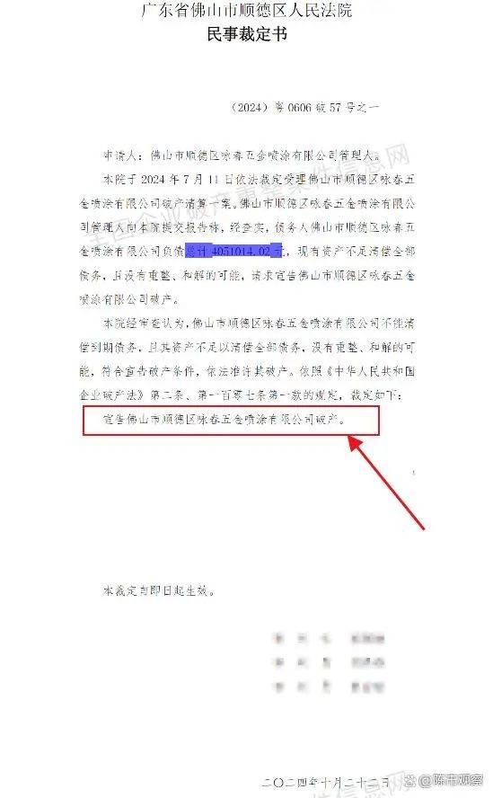 | 據(jù)消息顯示,佛山市順德區(qū)人民法院日前發(fā)布公告,以旗下資產(chǎn)無法覆蓋全部債務(wù)、且明顯不具備償債能力為由,裁定宣告佛山市順德區(qū)詠春五金噴涂有限公司(下稱“詠春五金”)破產(chǎn)。2024年7月11日,法院依法受理了關(guān)于“詠春五金”的破產(chǎn)申請(qǐng),并指定了資產(chǎn)管理人。經(jīng)資產(chǎn)管理人核定,詠春五金已確認(rèn)的負(fù)債額總計(jì)為4051014.02元人民幣,但其旗下資產(chǎn)已不足以償還全部債務(wù),且不具備償債能力、亦無和解之可能,符合破產(chǎn)條件。根據(jù)相關(guān)法律規(guī)定,佛山市順德區(qū)人民法院于2024年10月24日裁定宣告詠春五金破產(chǎn)。  自此,這家運(yùn)作了17年的五金工廠徹底成為歷史,一批產(chǎn)業(yè)工人因此而失業(yè),著實(shí)令人唏噓。讓人想不到的是,一家注冊(cè)資金本僅有5萬元的五金企業(yè),最終負(fù)債竟高達(dá)400多萬,而隨著詠春五金的破產(chǎn),這筆債務(wù)可能再無化解的可能了。 公開資料顯示,詠春五金于2007年注冊(cè)成立,距今已有17年時(shí)間。詠春五金的主營業(yè)務(wù)為生產(chǎn)制造五金制品、電器零配件等產(chǎn)品的。雖然詠春五金的規(guī)模并不大,但其能連續(xù)運(yùn)營17年,足以說明其產(chǎn)品得到了市場(chǎng)的驗(yàn)證和認(rèn)可。  然而,隨著內(nèi)外形勢(shì)的快速轉(zhuǎn)變,這家運(yùn)作17年的五金工廠最終走到破產(chǎn)的地步。在其破產(chǎn)之前,詠春五金已被列入“經(jīng)營異?!?、“失信被執(zhí)行人”名錄,處境之艱難由此可見一斑。 在業(yè)內(nèi)人士看來,由于受到下游需求持續(xù)萎縮等因素的影響,五金類制造業(yè)正面臨全方位挑戰(zhàn),曾經(jīng)“訂單接到手軟”的場(chǎng)景也一去而不復(fù)返,多數(shù)企業(yè)因訂單急速減少而陷入困難,減產(chǎn)、關(guān)停等情況屢見不鮮。在這個(gè)大背景下,一些大型五金制造企業(yè)憑借技術(shù)實(shí)力、資金充裕、市場(chǎng)和產(chǎn)品線多元化等優(yōu)勢(shì),尚且可以保住市場(chǎng)份額,而中小微企業(yè)則處于苦苦支撐狀態(tài),稍有不慎將難以為繼。  此外,由于詠春五金的管理者缺乏對(duì)市場(chǎng)形勢(shì)的客觀判斷,導(dǎo)致其陷入盲目擴(kuò)張的陷阱,進(jìn)而導(dǎo)致其資金鏈完全斷裂,經(jīng)營難以為繼,負(fù)債400多萬則是詠春五金盲目擴(kuò)張最好的證明,而資不抵債是詠春五金盲目擴(kuò)張后所必然需要承擔(dān)的后果。  總的來看,詠春五金的破產(chǎn)已成為既定事實(shí),難以改變。對(duì)于詠春五金的債權(quán)人來說,如何最大程度挽回?fù)p失,或成了最重要的問題。 來源:陳市觀察返回搜狐焦點(diǎn)首頁,查看更多 |