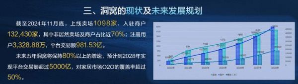 截至2024年11月底,洞窩平臺已上線賣場1098家,入駐商戶達(dá)132,430家,其中非居然賣場及商戶占比近70%。亮眼的數(shù)據(jù),充分展示了洞窩平臺在家居產(chǎn)業(yè)的強大影響力和市場認(rèn)可度。未來,洞窩平臺也將以數(shù)智升級為核心驅(qū)動力,保持高速增長,提升家居市場O2O的覆蓋率。