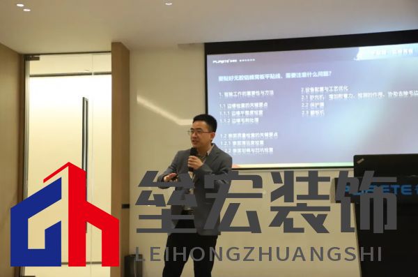 ??深度鏈接,共謀發(fā)展 ??1.零距離探秘智造實(shí)力 ??嘉賓團(tuán)實(shí)地參觀瀚秋順德總部的制造車間,近距離觀摩鋁蜂窩板飾面的工藝流程,感受數(shù)字化生產(chǎn)對(duì)品質(zhì)與效率的精準(zhǔn)把控。 ??2.上下游經(jīng)驗(yàn)分享 ??優(yōu)秀上下游企業(yè)踴躍分享各自領(lǐng)域目前最新的成果,從膠水、膜材、金屬材料到飾面加工設(shè)備,共探鋁蜂窩板技術(shù)趨勢(shì)。上下游精英同臺(tái)論道,圍繞"企業(yè)如何降本增效"、"飾面技術(shù)如何賦能"、"全鋁家居出海痛點(diǎn)"等議題展開(kāi)思維碰撞,為行業(yè)注入破局靈感。