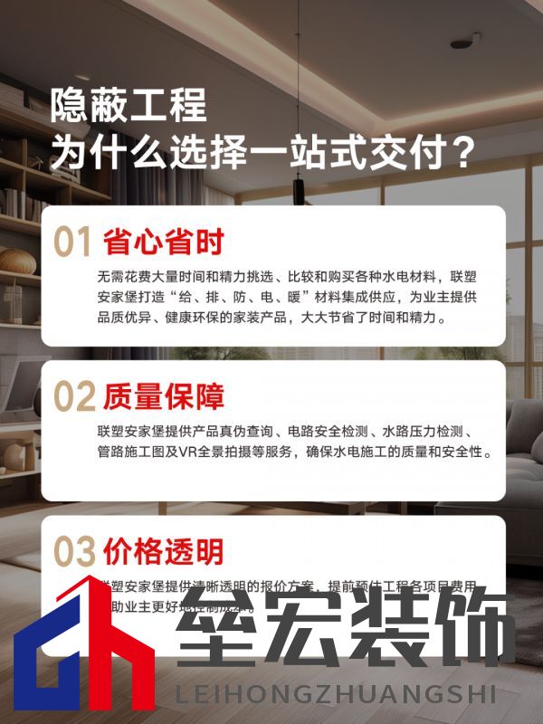 ??同時(shí),聯(lián)塑安家堡從售前 - 售中 - 售后提供全方位五星服務(wù)。在前期規(guī)劃階段,專(zhuān)業(yè)團(tuán)隊(duì)會(huì)根據(jù)業(yè)主需求,制定最適合的方案,規(guī)劃核心點(diǎn)就是選對(duì)服務(wù)團(tuán)隊(duì),而聯(lián)塑無(wú)疑是最佳選擇。聯(lián)塑憑借多年的行業(yè)經(jīng)驗(yàn),對(duì)隱蔽工程有著深刻的理解,能夠精準(zhǔn)把握業(yè)主需求。在施工過(guò)程中,嚴(yán)格按照標(biāo)準(zhǔn)執(zhí)行,切實(shí)解決各種家裝隱蔽工程難題。即使在售后,若出現(xiàn)任何問(wèn)題,聯(lián)塑的專(zhuān)業(yè)售后團(tuán)隊(duì)也會(huì)及時(shí)響應(yīng),迅速處理。這種全方位的服務(wù),讓家裝實(shí)現(xiàn)省時(shí)、省心、省力,真正做到讓業(yè)主無(wú)憂。