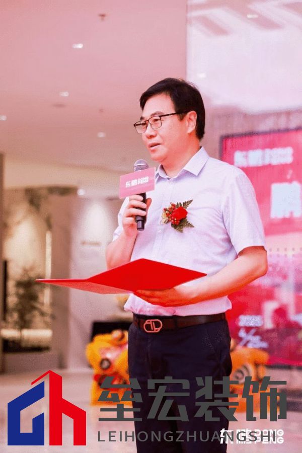 致辭寄望,共啟新程 在主持人激情開場(chǎng)后,東鵬控股董事會(huì)秘書兼副總裁黃征率先致辭。三位嘉賓的致辭以不同視角勾勒出東鵬的戰(zhàn)略藍(lán)圖:副總裁立足品牌53年發(fā)展根基,詮釋"科技·藝術(shù)·生活"融合的旗艦店革新理念,通過(guò)四大場(chǎng)景突破展現(xiàn)智造實(shí)力,寄望以綠色創(chuàng)新持續(xù)引領(lǐng)行業(yè);秘書長(zhǎng)作為第三方協(xié)會(huì)代表,高度認(rèn)可東鵬"以質(zhì)取勝、創(chuàng)新致遠(yuǎn)"的行業(yè)標(biāo)桿地位,見證其從單一瓷磚到全品類建材的跨越式發(fā)展;總經(jīng)理則從市場(chǎng)運(yùn)營(yíng)維度,系統(tǒng)闡述3000㎡新展廳承載的產(chǎn)品矩陣優(yōu)勢(shì)、政企協(xié)同的綠色發(fā)展承諾,以及構(gòu)建設(shè)計(jì)師共創(chuàng)平臺(tái)、強(qiáng)化媒體傳播、深化消費(fèi)者服務(wù)的多維戰(zhàn)略。三篇致辭共同傳遞出東鵬"向新而生"的堅(jiān)定信念