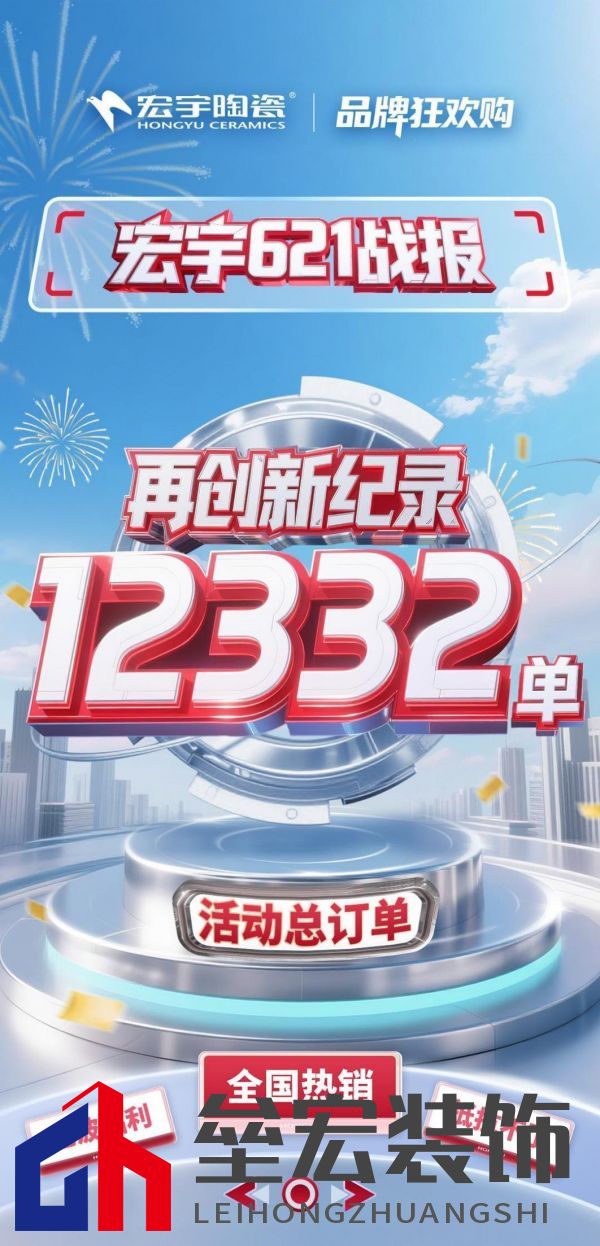 ??宏宇陶瓷618期間再創(chuàng)新紀(jì)錄12332單,總訂單數(shù)同比增長138%!品牌增長勢(shì)頭強(qiáng)勁,用戶活躍度創(chuàng)新高!本次活動(dòng)實(shí)現(xiàn)全網(wǎng)總曝光3550萬,總曝光次數(shù)797萬,累計(jì)總場(chǎng)觀119萬,抖音短視頻總曝光1753萬!