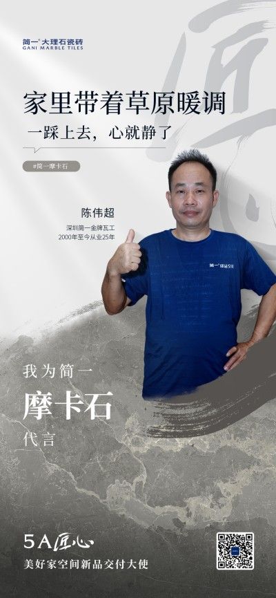 (摩卡石細啞面表面效果) ??陳偉超的二十五年,恰似他摯愛的摩卡石——不喧嘩,自有聲。他俯身校準(zhǔn)每道切割線的專注,如同磚面上凝固的沙痕,于靜默中鋪就天地的遼闊;他讓磚縫消隱的執(zhí)念,恰似這細啞工藝的溫潤,用精工托起生活的本真。在5A空間交付的敘事里,他是讓自然住進方寸的詩人:用磚石編織草原,用縫隙丈量心安。 ??這僅是簡一5A匠心?美好家空間新品交付大使故事的又一篇章。后續(xù)將有更多匠人帶著他們守護的簡一新品走來——或許是另一種地貌的呼吸,或許是另一段光陰的凝練。不妨靜候:那些藏在磚石肌理里的天地大美,將如何重塑“家”的想象邊界。 |